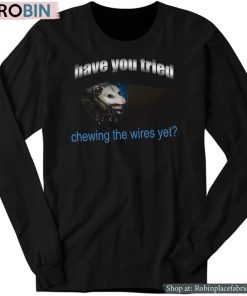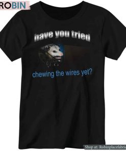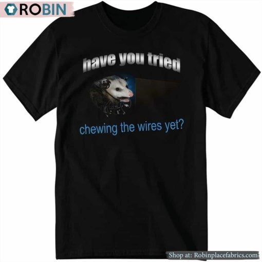 The quirky and humorous Have You Tried Chewing The Wires Yet Shirt design is sure to catch the attention of passersby. The shirt features a playful message urging the wearer to chew on wires, adding a touch of mischief to their outfit. With its bold font and contrasting colors, this shirt makes a bold statement and is sure to spark a conversation.