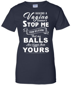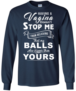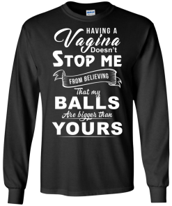 Having a vagina doesn’t stop me from believing that my balls are bigger than yours t shirt, tank, long sleeve, hoodie available