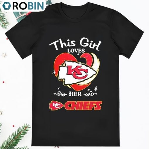 The Heart Kansas City Chiefs This Girl Loves Her Chiefs Shirt is a unique and stylish piece of clothing that is perfect for any die-hard Kansas City Chiefs fan. It features a bold and eye-catching design that showcases your love and support for the team. The shirt is made from high-quality materials that are comfortable and durable, ensuring that it will withstand the test of time. Whether you are at the game, watching from home, or just out and about, this shirt is the perfect way to show off your Chiefs pride.