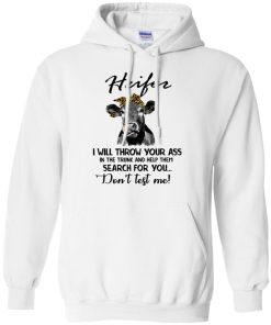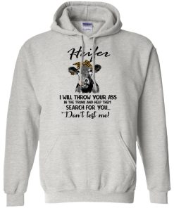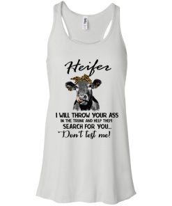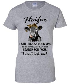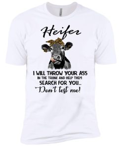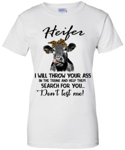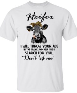 Heifer I will throw your ass in the trunk and help them search for you don’t test me shirt. Buy it now, from $19.99 and $3.99 shipping. This shirt available in t shirt, long sleeve, hoodie and multiple color.