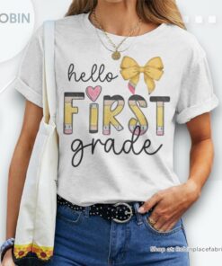 Start the school year in style with our charming and versatile unisex shirt that perfectly blends fashion and functionality. Adorned with a playful pencil and bow design, this trendy top is an ideal choice for any first grade teacher looking to make a memorable impression. Whether you're welcoming new students or joining a teaching team, this comfortable and eye-catching shirt ensures you'll stand out in the best possible way. Embrace the excitement of back-to-school season and let your outfit reflect your enthusiasm and dedication!