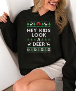 Hey Kids Look A Deer Ugly Pattern Christmas Shirt