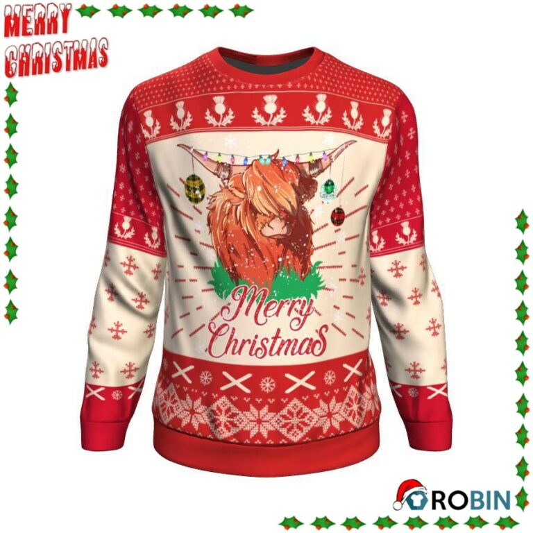 Highland Cow Scotland Christmas Ugly Sweatshirt, Sweater images