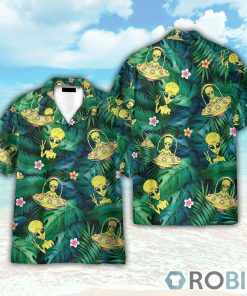 Step into a world of vibrant tropical beauty with this mesmerizing Hawaiian shirt. Inspired by the lush green leaves of the tropics, this vibrant shirt features a captivating pattern that instantly transports you to a paradise getaway. The design captures the spirit of adventure and curiosity, with the unexpected addition of a playful alien UFO motif. This eye-catching shirt is perfect for those seeking a unique and unforgettable style that stands out from the crowd. Crafted from high-quality materials, this shirt ensures both comfort and durability, making it an excellent choice for any occasion.