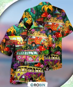 Hippie Bus Peace Life Colorful Style Hawaiian Shirt, Shirt For Summer features