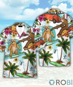 Hippie Camping Sloth Surfing Summer Beach Hawaiian Shirt features