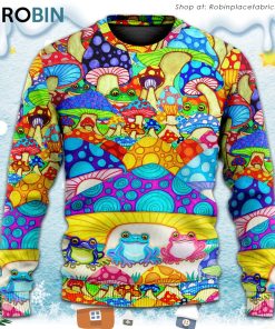 Hippie Frog Mushroom Hippie Colorful Art Peace 3D Printed Christmas Ugly Sweater