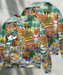 Hippie Funny Animals Happy Together Love Beach Sweater Christmas Ugly Sweater, Sweatshirt