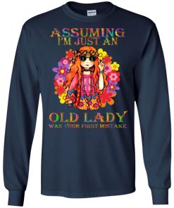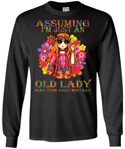 Hippie girl assuming I’m just an old lady was your first mistake shirt. Buy it now, from $19.99 and $3.99 shipping. This shirt available in t shirt, long sleeve, hoodie and multiple color.