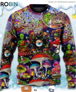 Hippie Mushroom Aliens Stay Hippie Colorful Art Ugly Christmas Sweater details