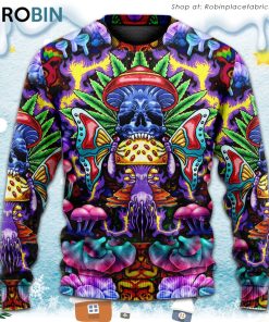 Hippie Mushroom And Skull Art Ugly Christmas Sweater details