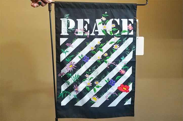 - Digitally printed on both sides of the fabric. Text is backwards on the back of the flag.
