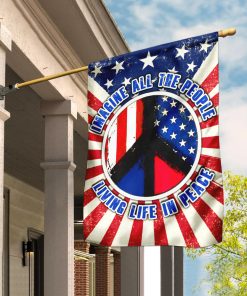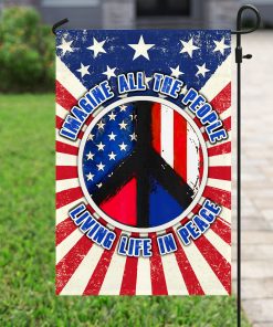 Hippie US Flag Imagine All The People Living Life In Peace Flag | Garden Flag