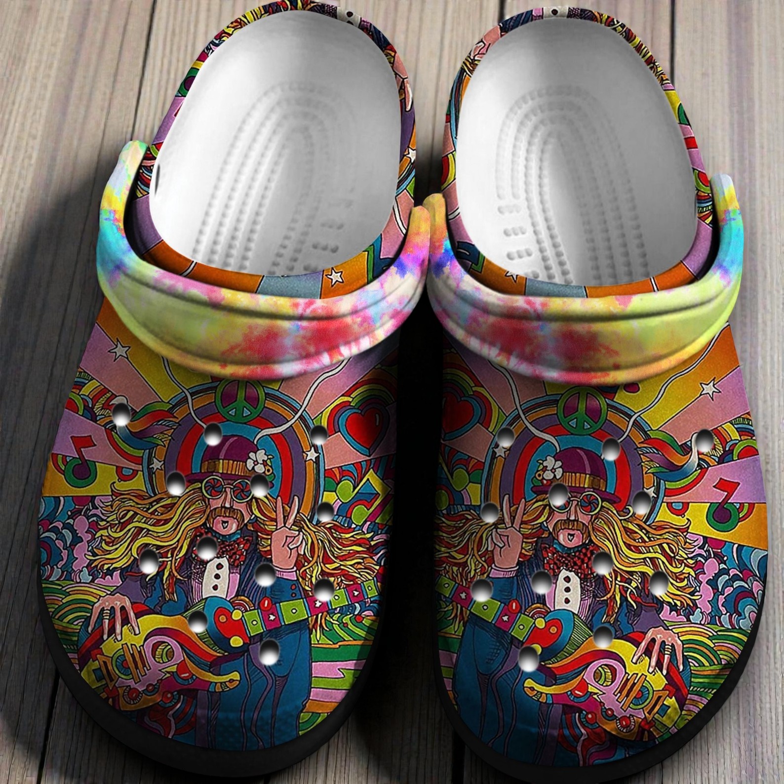 A burst of vivid colors spills across these shoes, as if a summer festival rolled into a single, wearable canvas. Swirling peace signs, waves that seem to rhythmically pulse, and cheerful characters strumming guitars create a lively scene that captures the youthful, rebellious spirit of the 60s and 70s. The tie-dye collar adds a playful touch, wrapping the ankle in an unmistakably retro vibe without any loud slogans or text—a silent nod to those who live the message rather than announce it. These shoes feel like a statement for someone who finds comfort in freedom and fun, whether they’re hiking down a sun-dappled trail, circling around a campfire, or just unwinding with friends. The design speaks directly to outdoorsy souls who carry a piece of that hippie spirit in their everyday pace—men who value boldness in both style and attitude without compromising on casual comfort. Sharing this kind of art is also a subtle way to celebrate bonds—the kind that span generations and shared memories. A father teaching his son the joy of music and nature, a friend who enjoys bright, eye-catching flair on their weekend adventures, or a nephew discovering the roots of a counterculture that still pulses through modern life—all could find something meaningful in this expression of peace and color. The Hippie Were Right custom shoes bring all those hints of nostalgia and energy into a tangible, wearable form that feels like both a celebration and an invitation to keep that playful, adventurous spirit alive.