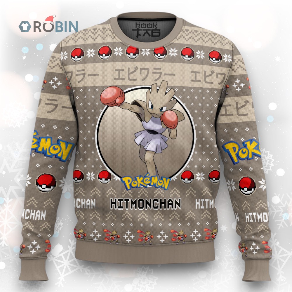 Knock out the competition at your next holiday party with this retro Pokémon sweater! Featuring everyone's favorite fighting-type, this festive design is sure to be a conversation starter. Get yours now and celebrate the season in style! Limited quantities available.