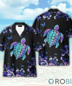 Holographic Turtle And Butterflies Hawaiian Shirt features