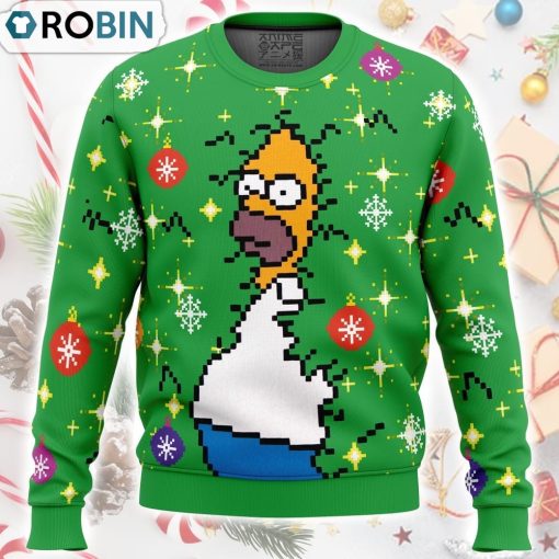 The Homer Bush Meme The Simpsons Ugly Christmas Sweater is a great way to show off your love of the classic animated cartoon The Simpsons. This festive sweater sports an image of Homer Simpson dressed as George Bush Sr., relaxing in his favorite armchair whilst wearing his holiday best; a gaudy Christmas sweater, complete with reindeer and a Santa hat. The words ‘Merry Christmas’ complete the humorous ensemble below, as a reminder of the holiday season. This exclusive design pays hilarious homage to the beloved main character, making it a must-have for any dedicated fan. Enjoy the festive season in style with this eye-catching and unique sweater.