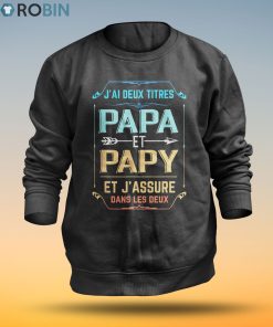 This Homme Deux Papa Jai Et Papy Titres Grand Pre Shirt features a classic style and design. This classic t-shirt has a great fit and is perfect for any man who has two dads, papa and grandpa. The shirt features a crew neck styling with a t-shirt length hem, a print of the two titles dad and grandpa on the front, and a solid color background. It is perfect for any man who is proud of both of his dad and grandpa titles. The classic fit of this shirt ensures that it will look great no matter the occasion.