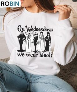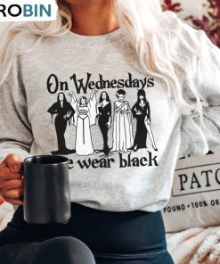 Horror Goth Queens Morticia Addams Lily Munster Elvira Shirt, On Wednesdays We Wear Black Unisex Shirt details
