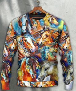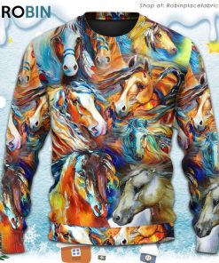 Horse Face Colorful Cool Art Style Christmas Ugly Sweater, Sweatshirt details