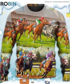 Horse Racing Don't Look Back 3D Printed Christmas Ugly Sweater details
