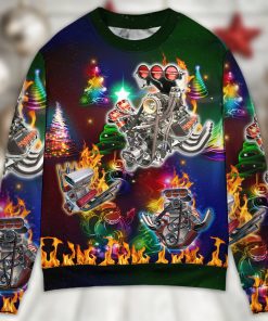 Hot Rod Christmas Tree Fire Christmas Ugly Sweater, Sweatshirt details