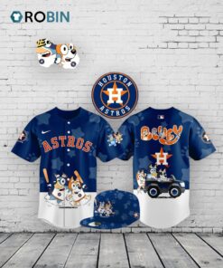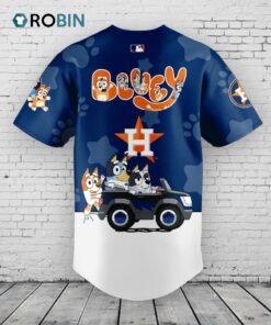 Batter up! Get ready to hit a home run with this adorable Bluey and Bingo inspired baseball jersey. Perfect for young Astros fans and Bluey lovers alike! Show off your team spirit in a fun and unique way. Available now, grab yours before they're gone!
