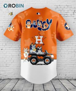 Batter up! ⚾️ Get ready for game day with this adorable Bluey and Bingo inspired baseball jersey! Rocking vibrant orange and featuring your favorite cartoon pups, it's the perfect way to show your team spirit with a playful twist. A must-have for young fans and collectors alike! Limited quantities available.
