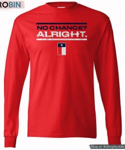 The Houston No Chance Alright Shirt combines comfort and style seamlessly, making it a must-have addition to any wardrobe. The shirt features a classic crew neck design and is made from high-quality material that is both soft and durable. With its bold design and vibrant colors, this shirt is sure to turn heads and make a statement wherever you go. Whether you’re hitting the gym or just hanging out with friends, the Houston No Chance Alright Shirt is the perfect choice for any occasion.