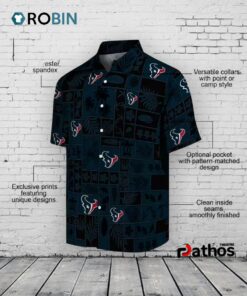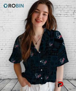Show your Texans pride in style with this vibrant patchwork Hawaiian shirt! Perfect for game day, tailgates, or just relaxing in the sun. Get ready to turn heads and show off your love for H-Town!