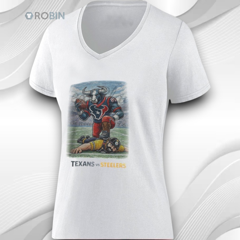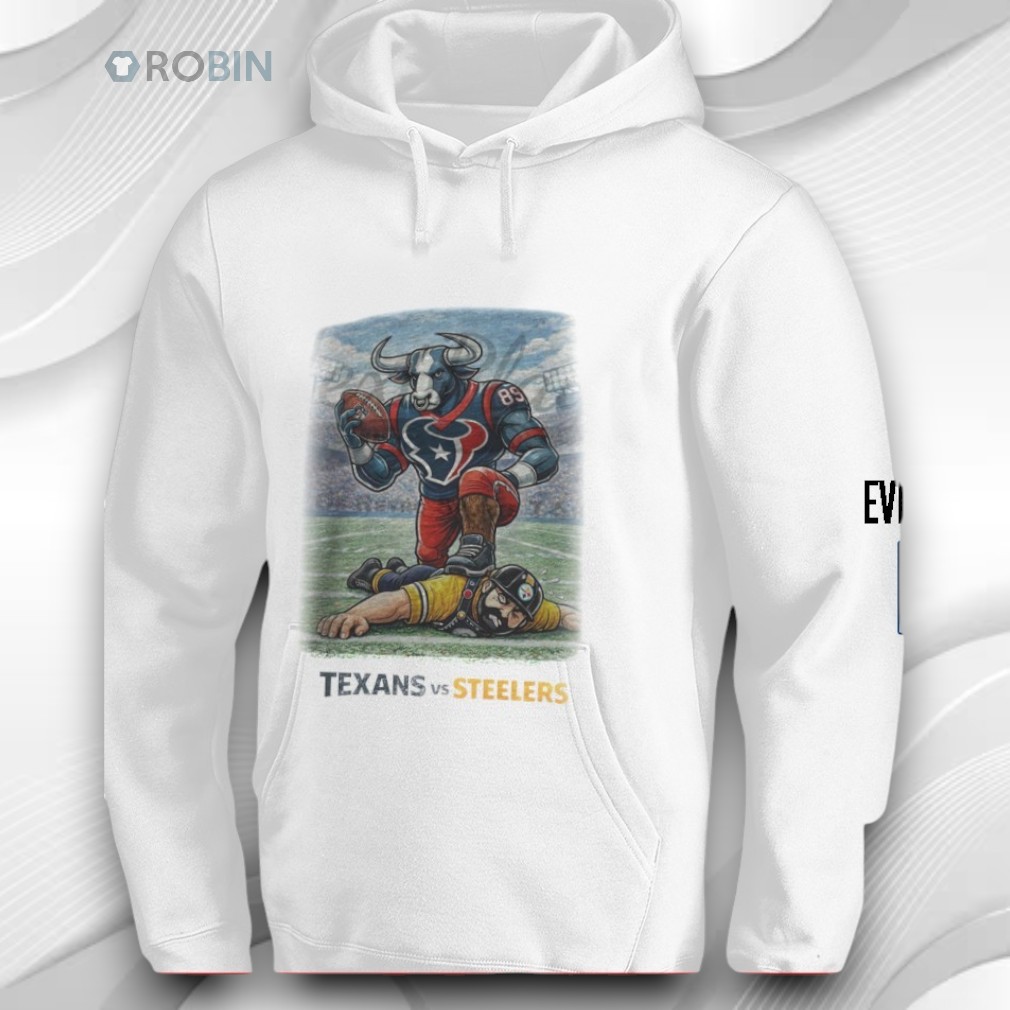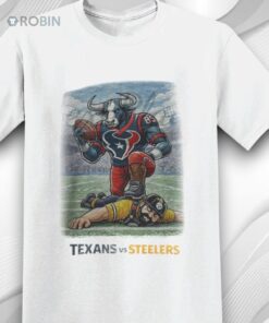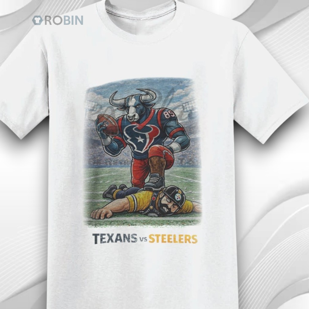 Printed in sharp detail with rich, vibrant colors, this design brings the Texans vs Steelers rivalry to life. Whether you choose it as a t-shirt, hoodie, sweatshirt, or long sleeve, it’s built to stand out and spark conversations among football fans.