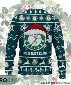 The HSG Wetzlar House Bill Ugly Christmas Sweater is a fun and festive garment perfect for getting into the holiday spirit. The sweater features a bold and colorful design with various Christmas-themed elements such as snowflakes, reindeer, and gifts. The ugly aspect of the sweater adds to its charm and makes it a popular choice for holiday parties and gatherings. Made from soft and comfortable materials, this sweater is both stylish and cozy. It is the perfect way to show off your love for the holiday season and support your favorite sports team, HSG Wetzlar.