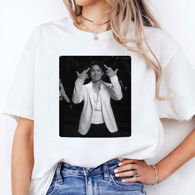 The front features a clean square photo print that feels like a red-carpet freeze-frame. Minimal, bold, and built for outfits that don’t need