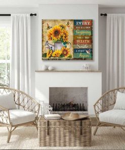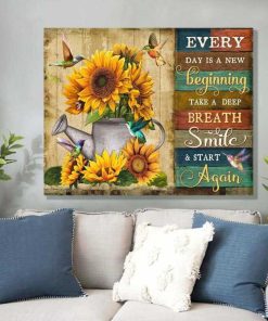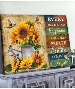 Hummingbird Every Day Is A New Beginning Take A Deep Breath Smile And Start Again Sunflower Wall Art Floral Decor
