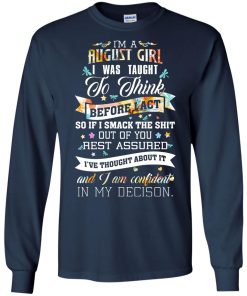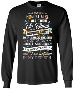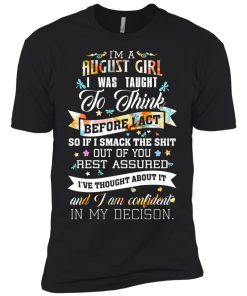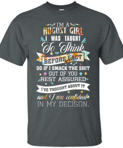 I am a August girl I was taught to think before I act t shirt, tank top, hoodie, long sleeve available
