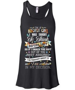 I am a August girl I was taught to think before I act t shirt, tank top, hoodie