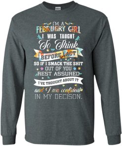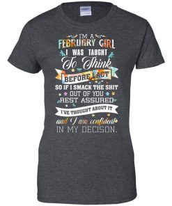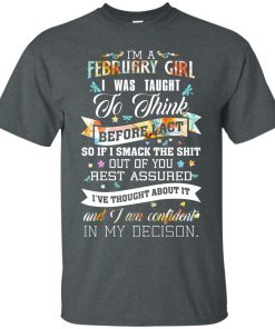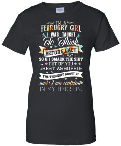I am a February girl I was taught to think before I act t shirt, tank top, hoodie, long sleeve available