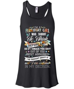 I am a February girl I was taught to think before I act t shirt, tank top, hoodie
