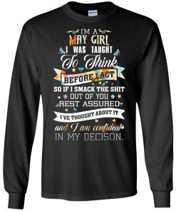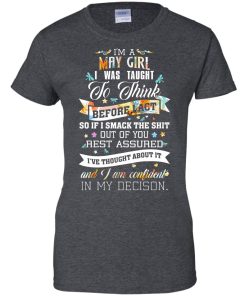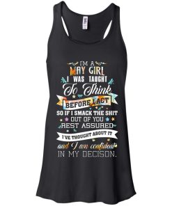 I am a May girl I was taught to think before I act t shirt, tank top, hoodie