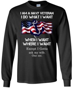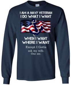 I am a Navy Veteran I do what I want when I want where I want except I gotta ask my wife one sec shirt. T shirt, long sleeve, hoodie, tank top, vneck are available