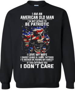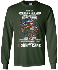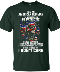 I Am An American Old Man I’m Not Afraid To Be Patroptic I Love My Wife – I Shoot Guns & I Have Tattoos – I’d Rather Be Riding My Harley – If This Offends You I Don’t Care Tshirt, Tank, Hoodie, Long Sleeve Available