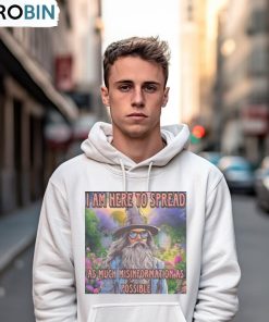 The I Am Here To Spread As Much Misinformation As Possible Shirt Hoodie Ladies Tee is a fashion statement that seeks to provoke and ignite conversation. With a bold and eye-catching design, this shirt challenges traditional notions of honesty and truth. It aims to bring awareness to the impact of disinformation in society and encourages people to critically analyze the information they consume. The shirt serves as a reminder to stay vigilant and informed in a world filled with misleading information.