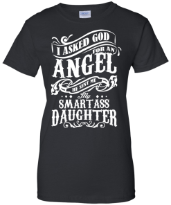 I asked god for an angel he sent me smartass daughter tshirt, tank, sweater, hoodie, long sleeve available