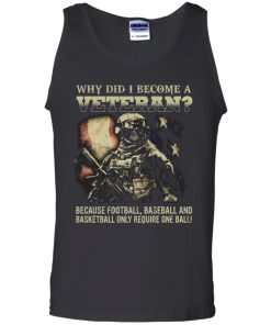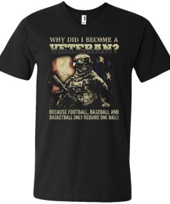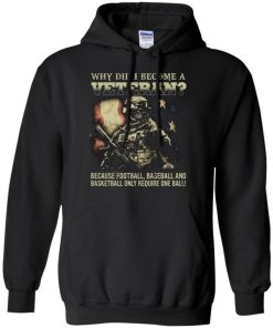 Why did i become a veteran because football baseball and basketball only require one ball shirt. This shirt available in unisex t shirt, long sleeve, hoodie and multiple color. Buy it now, from $19.99 and $3.99 shipping.