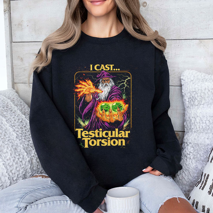 “I CAST… TESTICULAR TORSION” like it’s the ultimate cursed spell. It’s outrageous, ridiculous, and guaranteed to get a shocked laugh