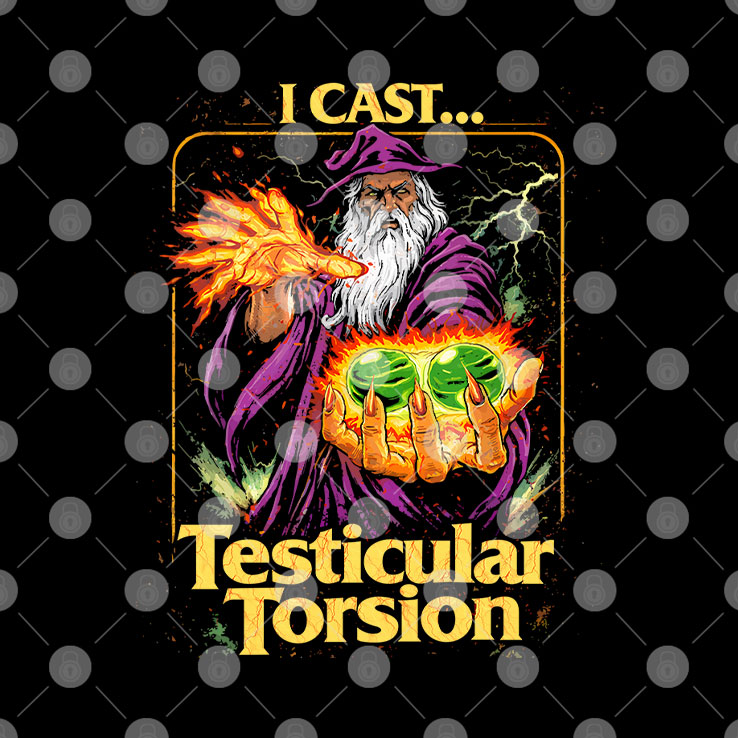- Big readable text: “I CAST… TESTICULAR TORSION”