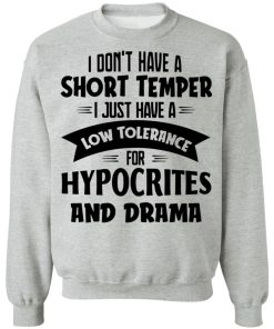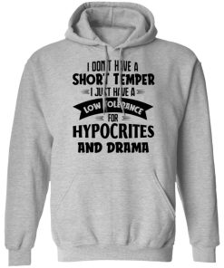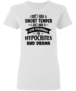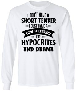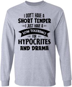 I Don’t Have A Short Temper I Just Have A Low Tolerance For shirt. Available in t shirt, long sleeve, tank top, hoodie, sweatshirt and multiple color. If you want in another color please contact us. Quality control before delivery. Print: Digital printing, colors won’t fade or peel. The design is printed with new age printing technology. It is printed with a water – soluble and eco – friendly ink. Treat yourself, or make this shirt the perfect gift on birthdays, anniversaries, holidays, or give a gift to friend, yourself, or family, or for no reason at all.
