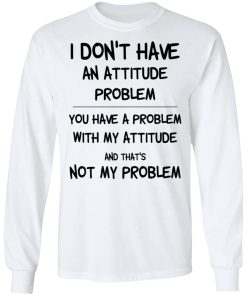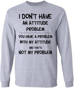 I Don’t Have An Attitude Problem You Have A Problem With My Attitude shirt. Available in t shirt, long sleeve, tank top, hoodie, sweatshirt and multiple color. If you want in another color please contact us. Quality control before delivery. Print: Digital printing, colors won’t fade or peel. The design is printed with new age printing technology. It is printed with a water – soluble and eco – friendly ink. Treat yourself, or make this shirt the perfect gift on birthdays, anniversaries, holidays, or give a gift to friend, yourself, or family, or for no reason at all.