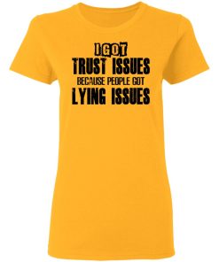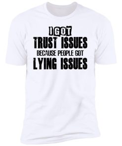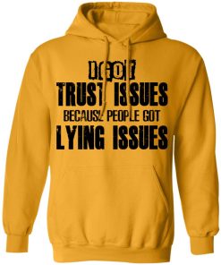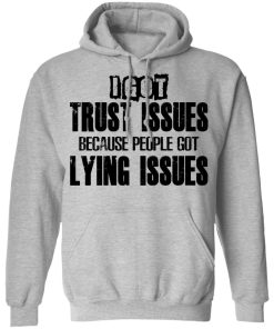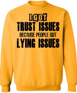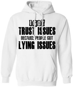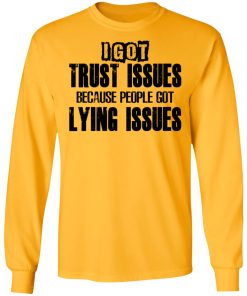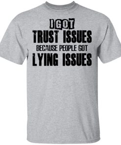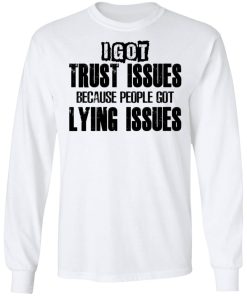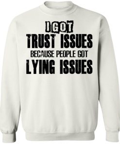 I Got Trust Issues Because People Got Lying Issues shirt. Available in t shirt, long sleeve, tank top, hoodie, sweatshirt and multiple color. If you want in another color please contact us. Quality control before delivery. Print: Digital printing, colors won’t fade or peel. The design is printed with new age printing technology. It is printed with a water – soluble and eco – friendly ink. Treat yourself, or make this shirt the perfect gift on birthdays, anniversaries, holidays, or give a gift to friend, yourself, or family, or for no reason at all.