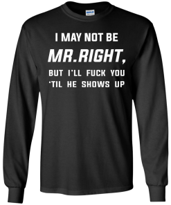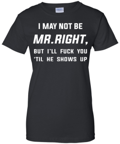I May Not Be Mr Right, But I’ll Fuck You ‘Til He Shows Up. This shirt available in tshirt, tank, long sleeve, hoodie